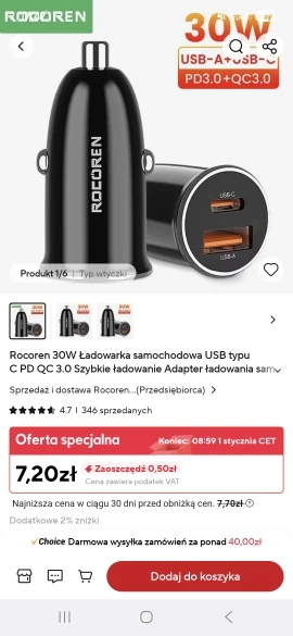 Model Number: Rocoren PD 30W Dual-Port Car Charger